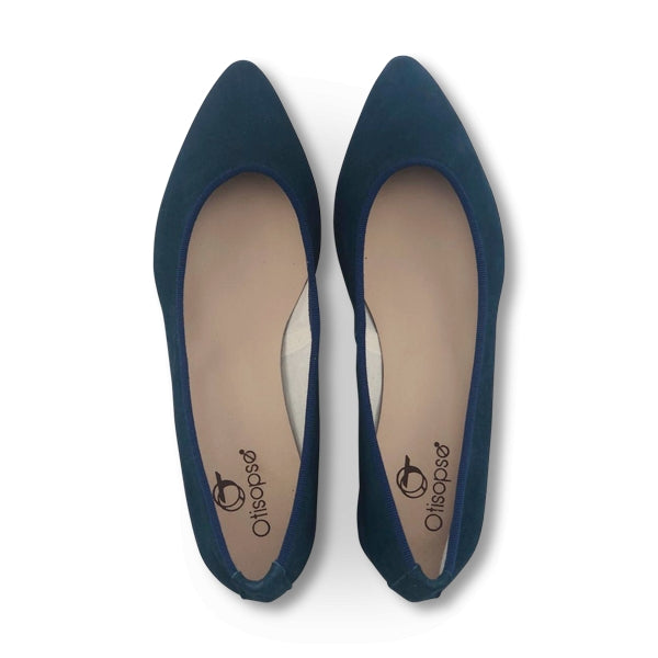 Blue suede flat shoes with leather sole and 3 cm heel. Unlined and with leather insole. 100% Made in Italy women's footwear. Casual model, versatile, can be combined with various outfits