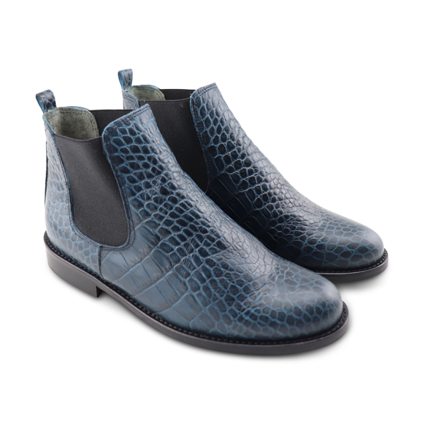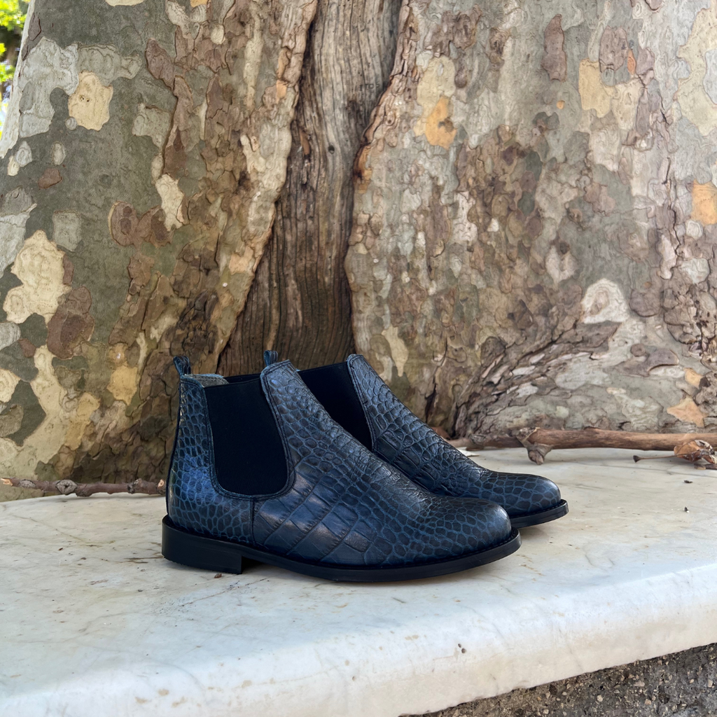 Scopri l'eleganza e la raffinatezza degli stivaletti in pelle blu, realizzati in vera pelle di vitello con un esclusivo effetto coccodrillo. Questi stivaletti non sono solo un accessorio, ma un vero e proprio must-have per ogni donna attenta allo stile.
